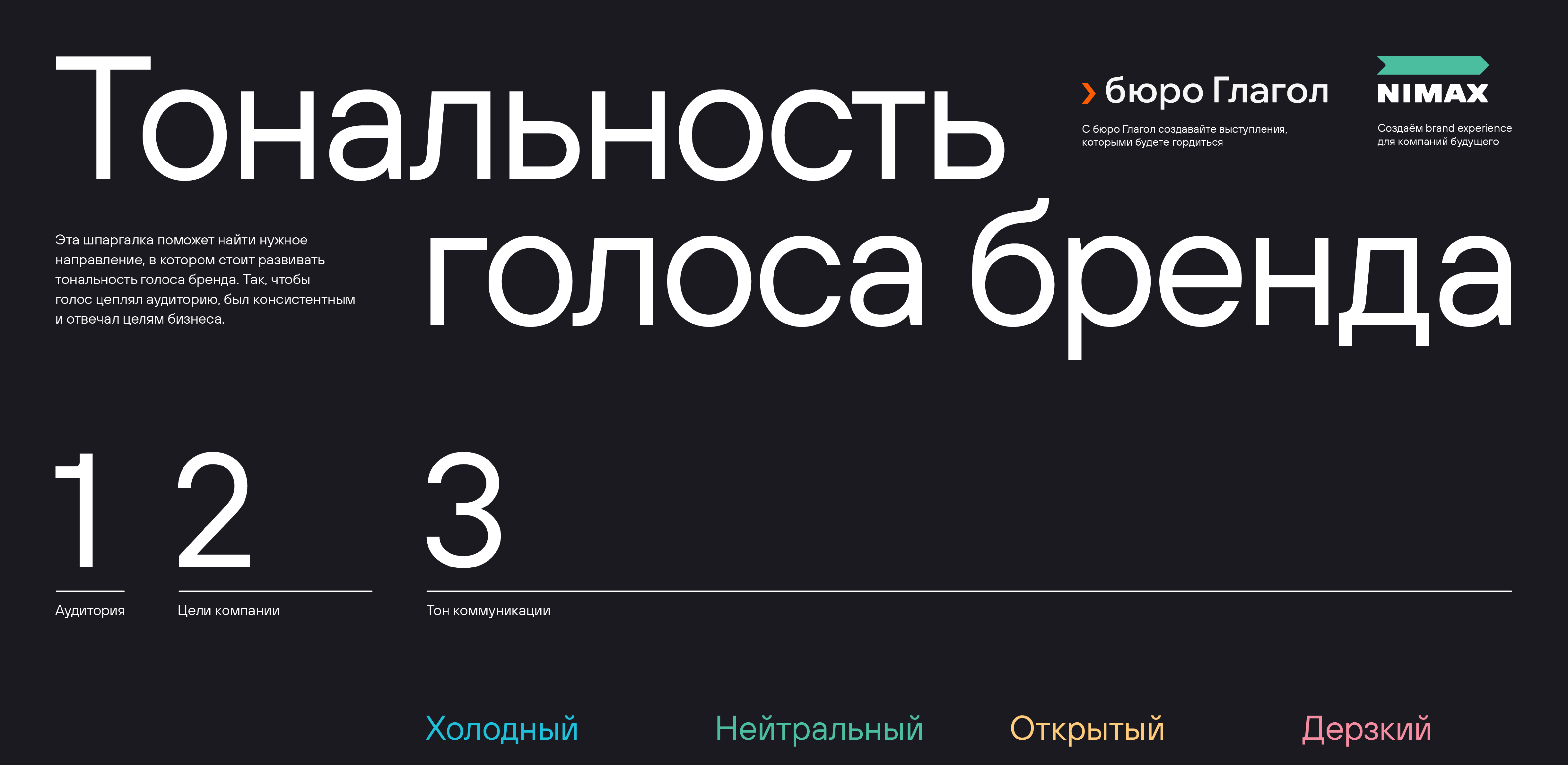 Совместно с бюро публичных выступлений Глагол сделали плакат для тех, кто хочет нащупать Tone Of Voice — стиль общения бренда с аудиторией.