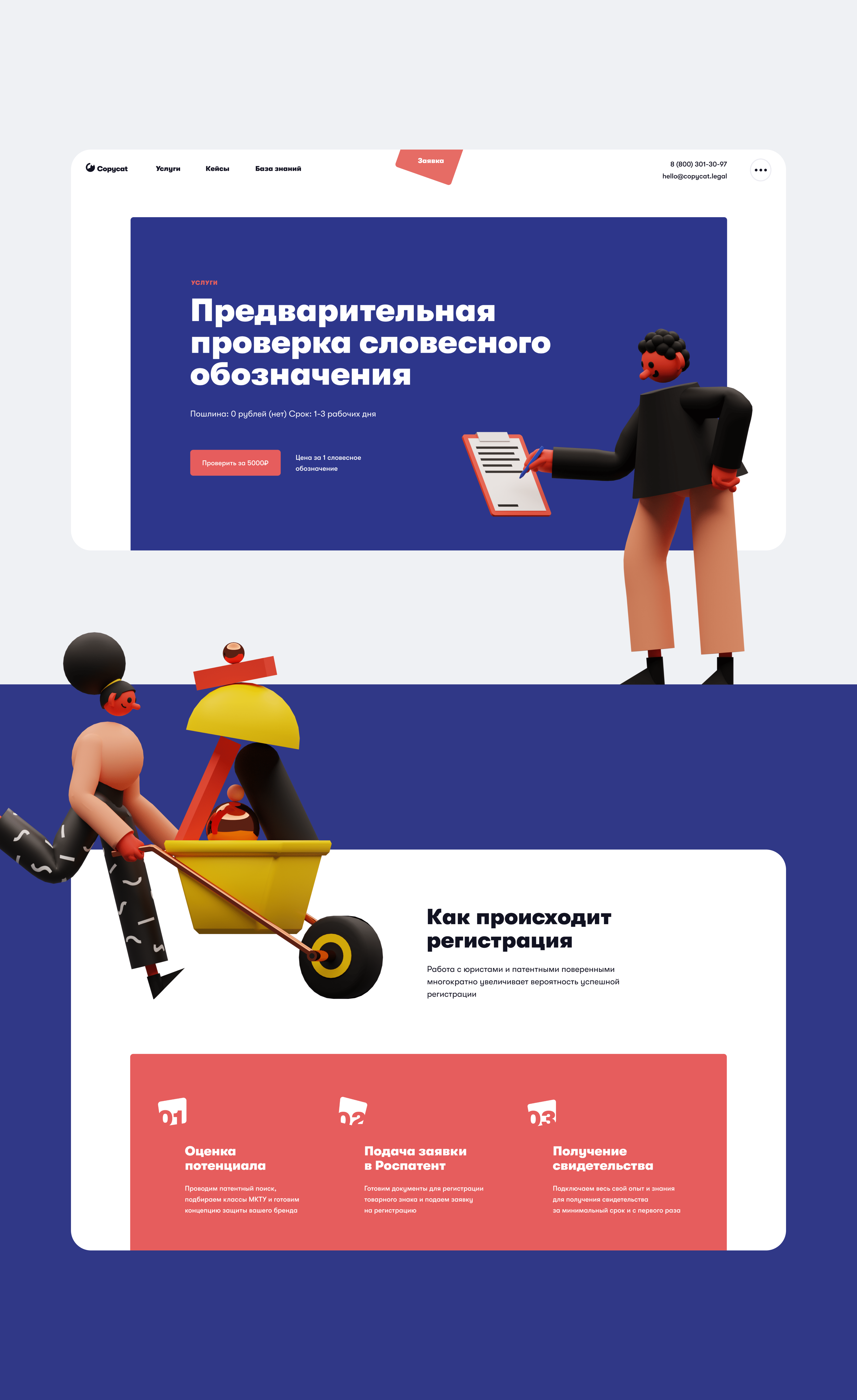 Идею открытости и дружелюбия развили с помощью иллюстраций от Craftwork: подкрепили рассказ о юридических особенностях работы с товарными знаками добродушными 3D-персонажами.