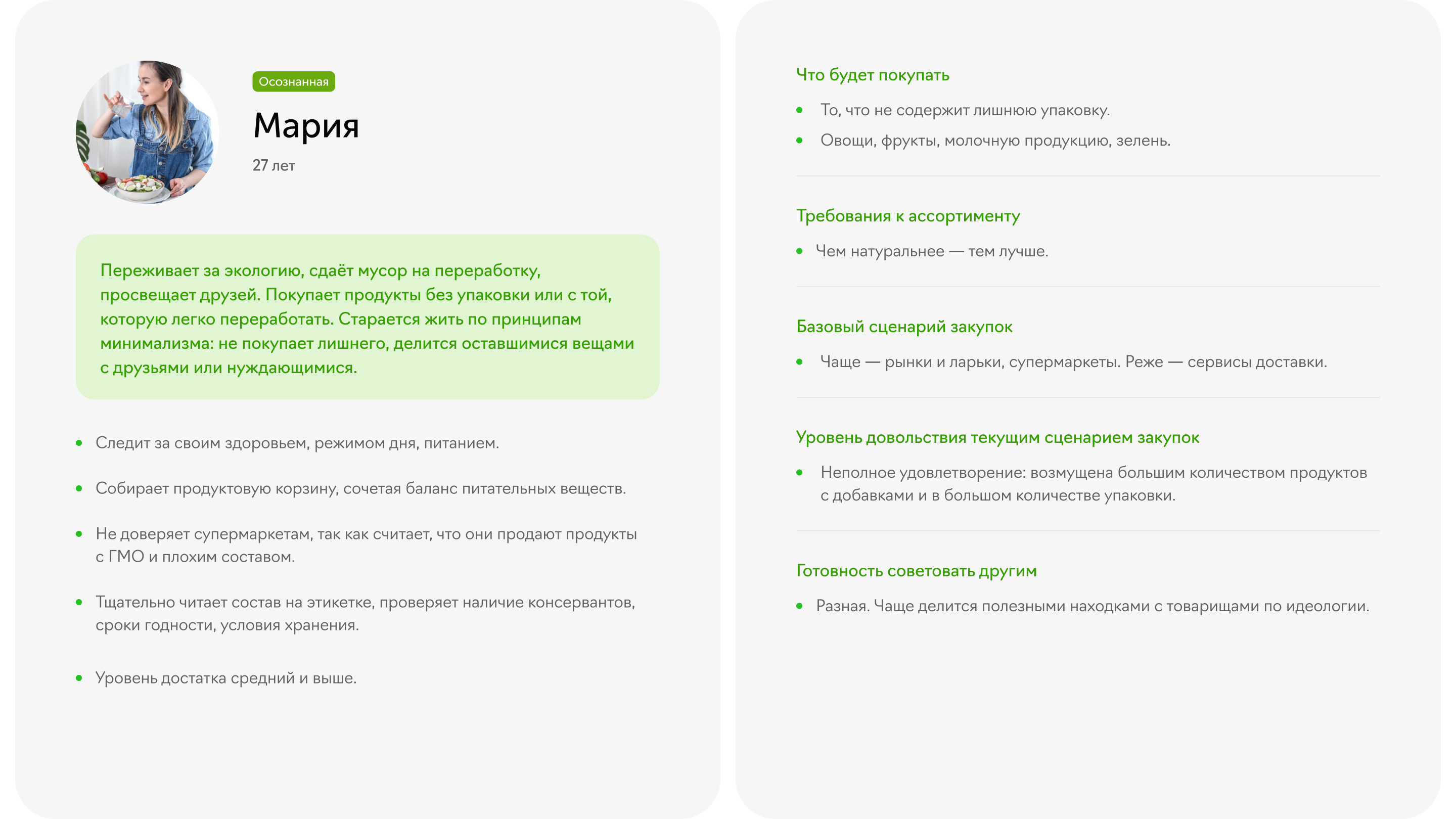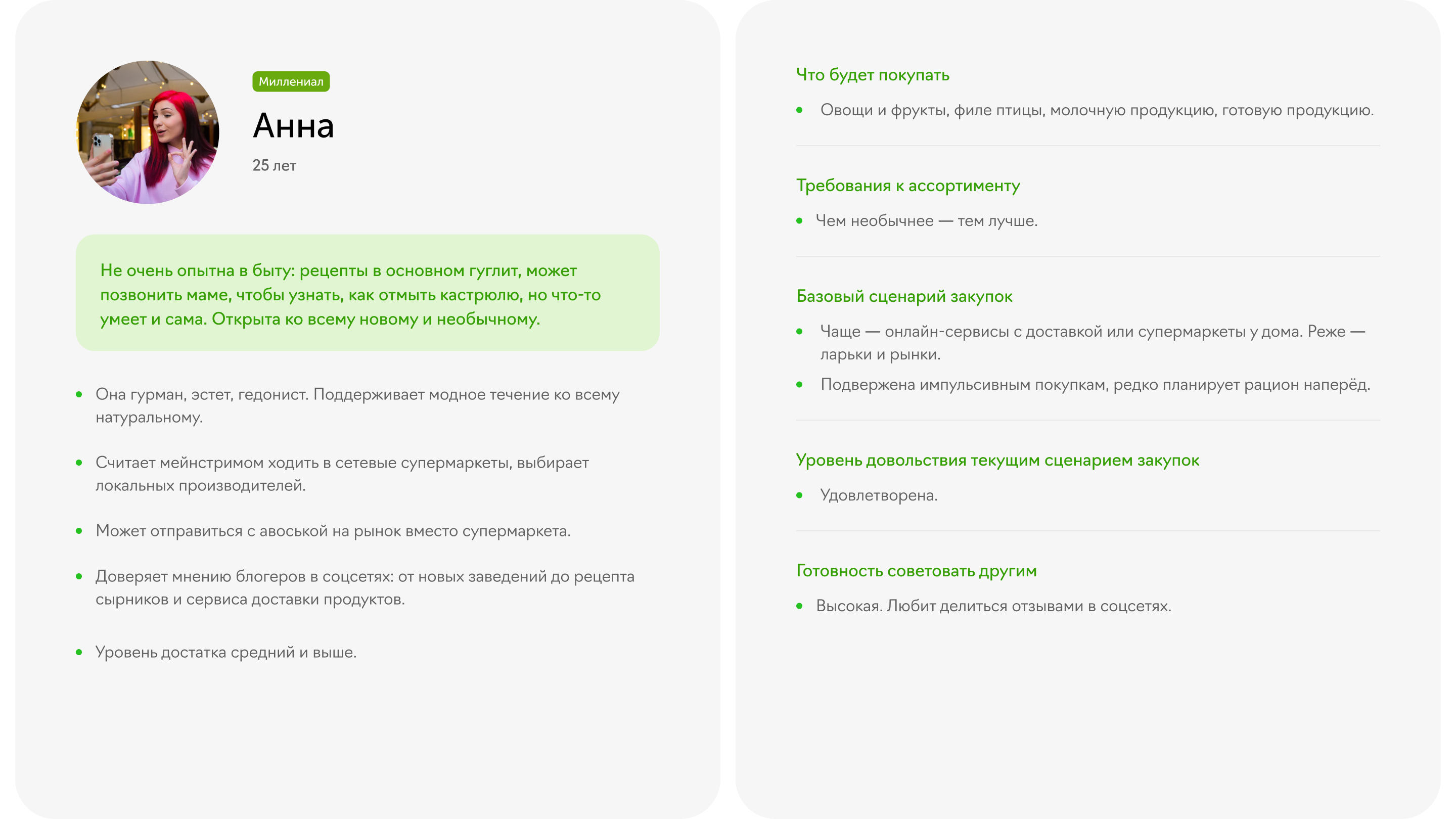 В результате получилось пять персона-моделей, чьи потребности и опыт мы учли при разработке структуры и дизайна платформы.