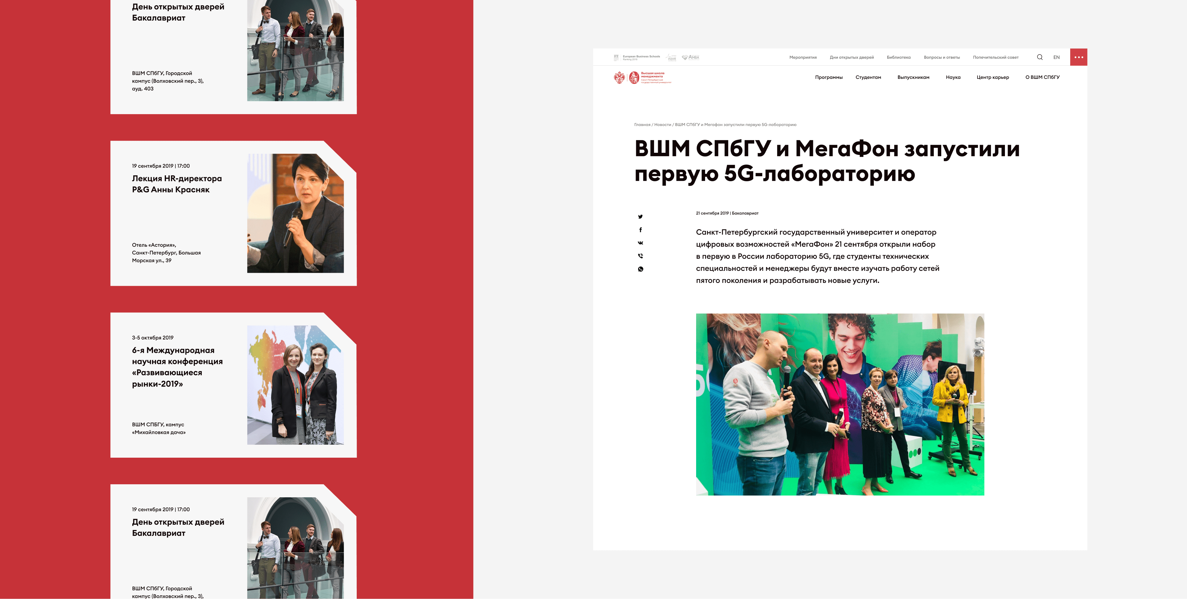При создании концепции сайта ВШМ СПбГУ мы предложили несколько приёмов: