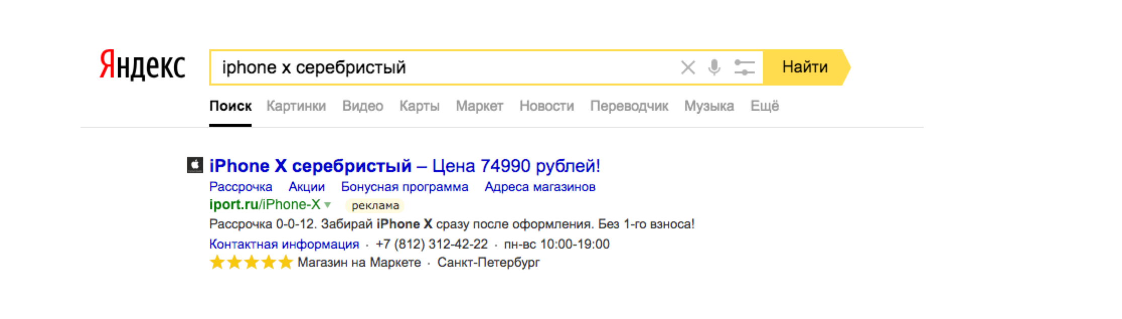 ΠΠ°ΡΡΡΠΎΠΈΠ² ΡΠΎΠ²Π°ΡΠ½ΡΠ΅ ΠΈΒ ΠΊΠ°ΡΠ΅Π³ΠΎΡΠΈΠΉΠ½ΡΠ΅ ΡΠΈΠ΄Ρ, ΠΌΡΒ ΠΎΡΡΠ»ΠΈΡΠΎΠ²Π°Π»ΠΈ ΠΈΒ ΡΡΡΠ½ΡΡ ΡΠ°ΡΡΡΒ β ΡΠΎΠ·Π΄Π°Π»ΠΈ 10Β ΠΎΡΠ΄Π΅Π»ΡΠ½ΡΡ ΠΊΠ°ΠΌΠΏΠ°Π½ΠΈΠΉ Π΄Π»ΡΒ Π Π‘Π―, ΠΠΠ‘ (ΠΎΠ±ΡΠΈΠ΅, Π±ΡΠ΅Π½Π΄ΠΎΠ²ΡΠ΅, ΡΠ΅ΠΌΠ°ΡΠΊΠ΅ΡΠΈΠ½Π³ΠΎΠ²ΡΠ΅, ΠΊΠ°ΡΠ΅Π³ΠΎΡΠΈΠΉΠ½ΡΠ΅), ΠΊΠ°ΠΌΠΏΠ°Π½ΠΈΠΈ Π½Π°Β ΠΏΠΎΠΈΡΠΊΠ΅ Π΄Π»ΡΒ ΡΠ°ΠΌΡΡ ΠΎΠ±ΡΠΈΡ Π·Π°ΠΏΡΠΎΡΠΎΠ² (Β«ΠΌΠ°Π³Π°Π·ΠΈΠ½ ΡΠ΅Ρ Π½ΠΈΠΊΠΈ appleΒ», Β«ΠΈΠ½ΡΠ΅ΡΠ½Π΅Ρ-ΠΌΠ°Π³Π°Π·ΠΈΠ½ appleΒ») ΠΈΒ Π΄Π»ΡΒ Π±ΡΠ΅Π½Π΄ΠΈΡΠΎΠ²Π°Π½Π½ΡΡ Π·Π°ΠΏΡΠΎΡΠΎΠ² (Β«ΠΊΡΠΏΠΈΡΡ iphoneΒ», Β«ΠΏΡΠΎΠ΄Π°ΠΆΠ° macbook Π²Β ΡΠΏΠ±Β»).