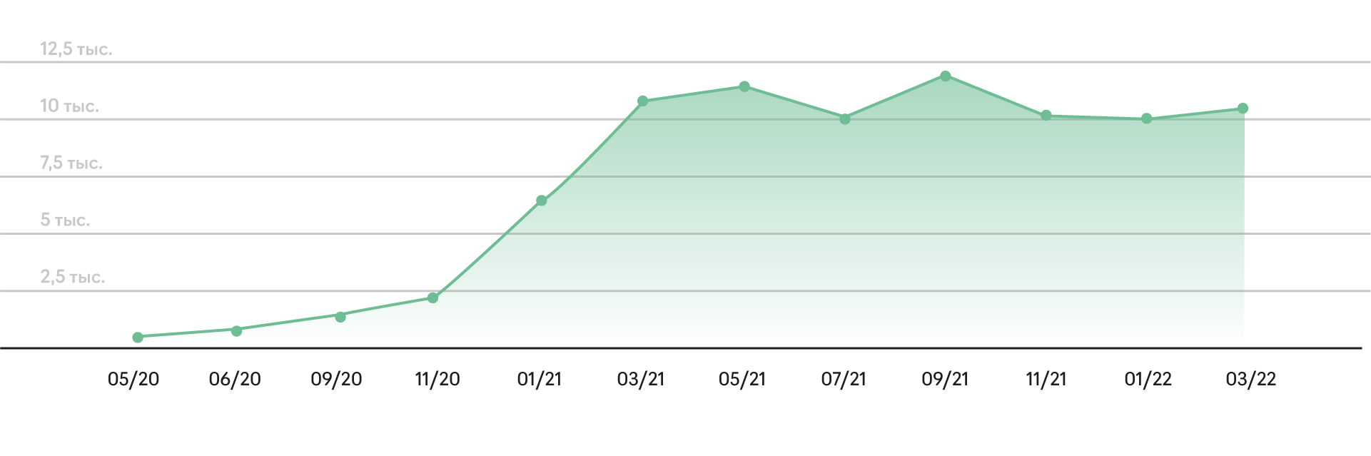 С мая 2020 года по март 2022 года мы получили следующие результаты: