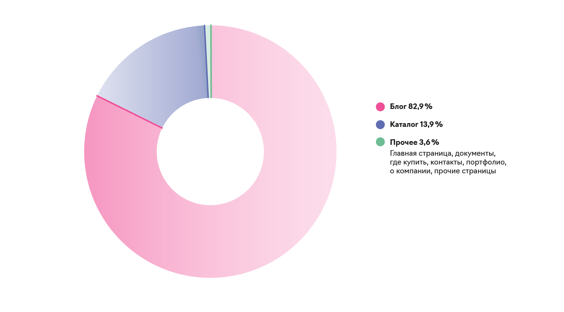 Информационные статьи в блог начали публиковаться в начале июля 2020 года. И сейчас небрендовый трафик на сайт (переходы на страницы блога) составляет 82,9%.