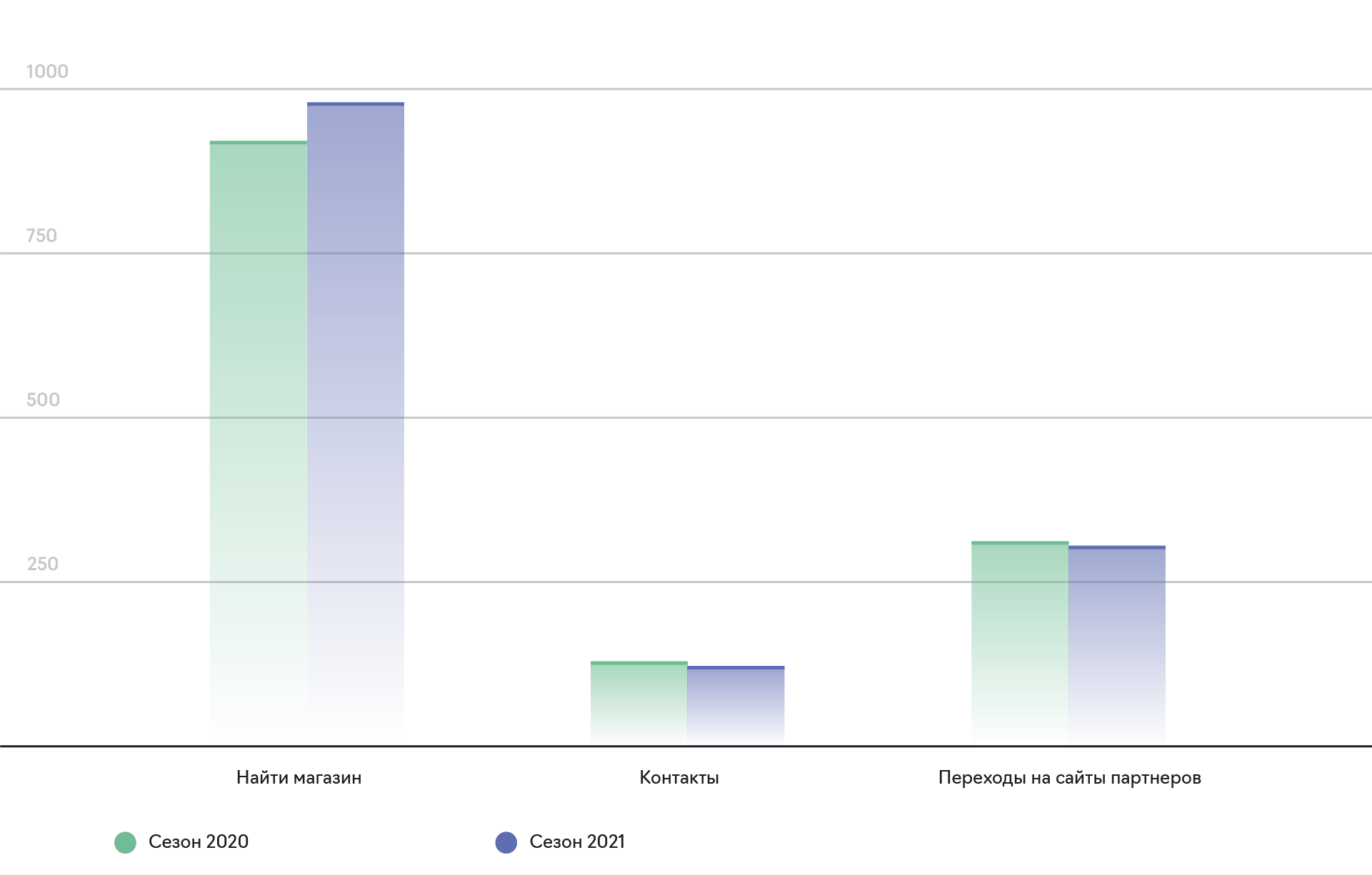 Так как наша конечная цель — привлечение большего числа покупателей в магазины дистрибьюторов, то в сезонный спрос стараемся увеличивать KPI по микроконверсии «Найти магазин». Мы обновляем семантику, параметры объявлений и всё, что может способствовать улучшению показателей рекламы.