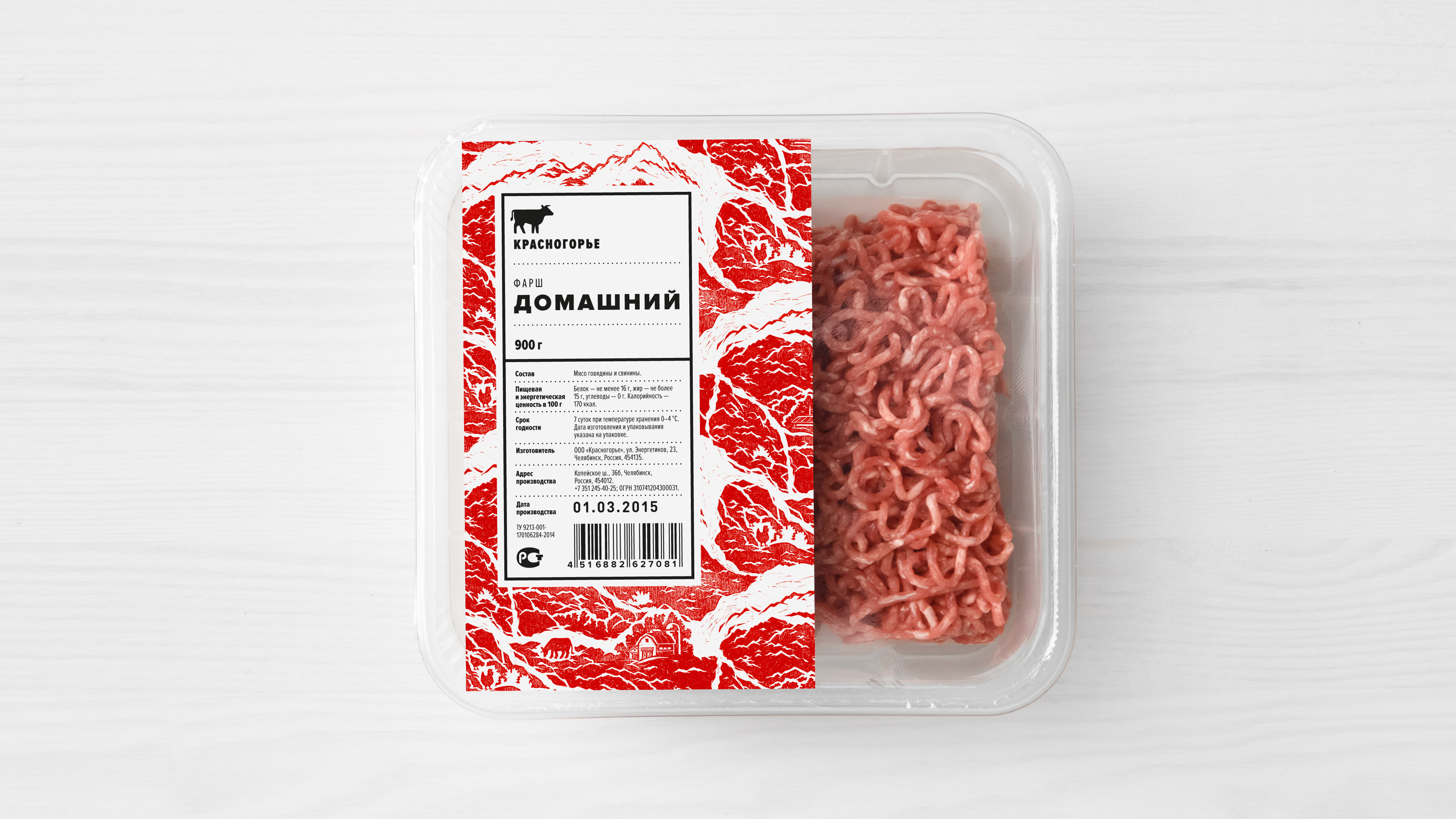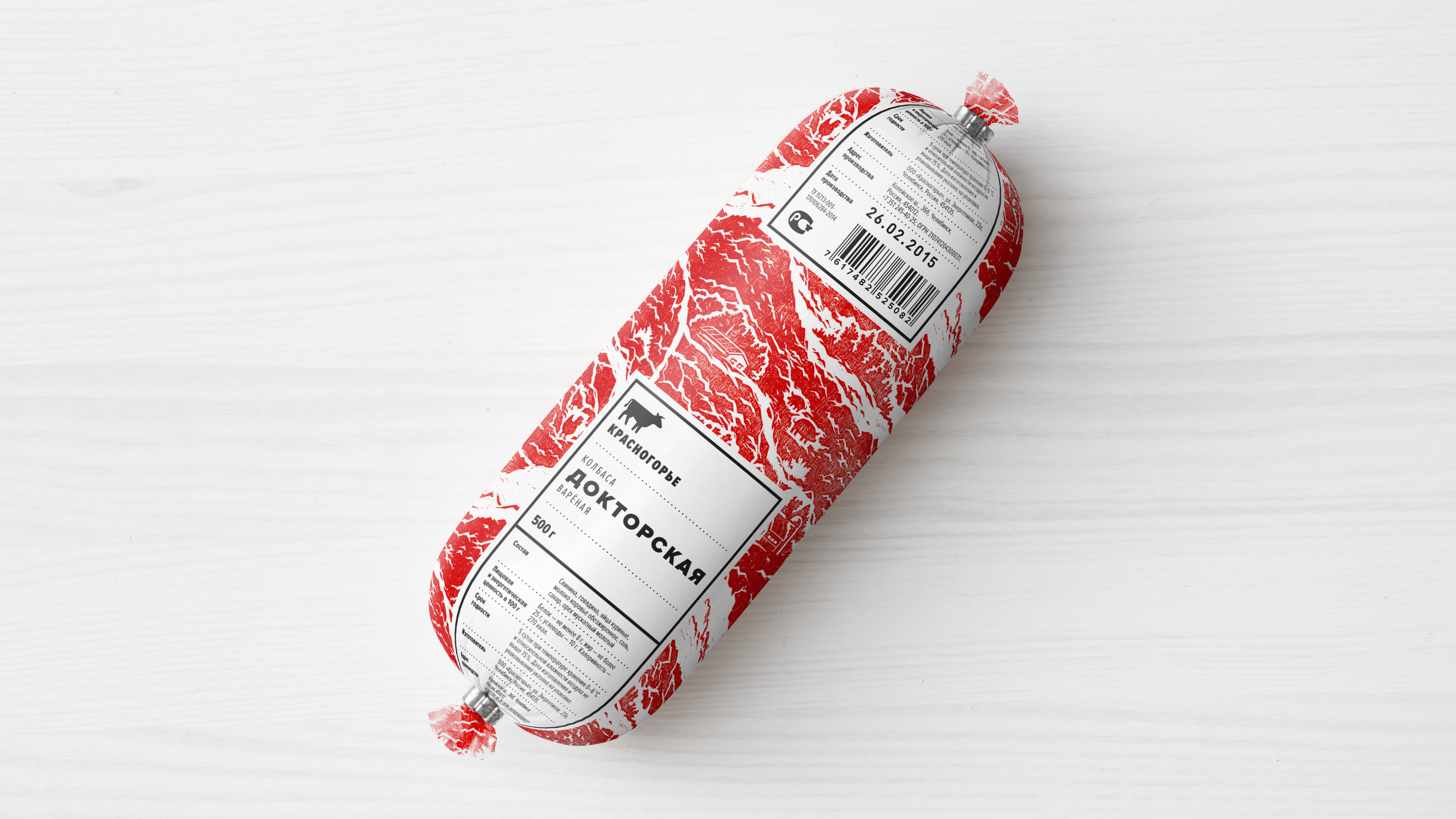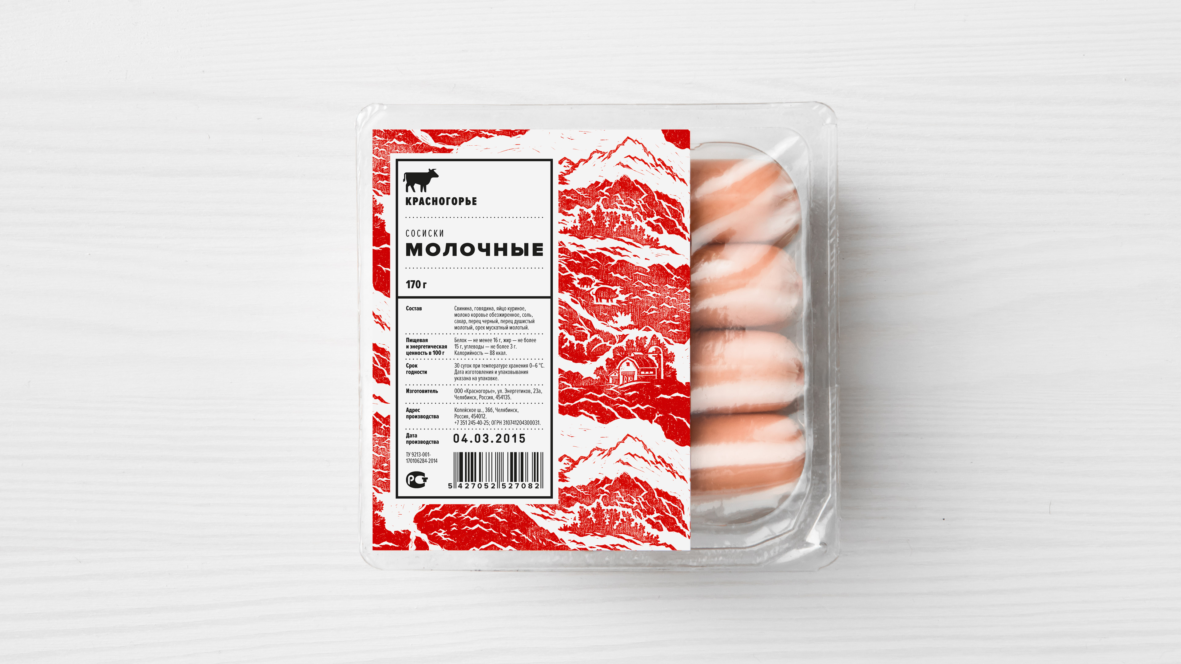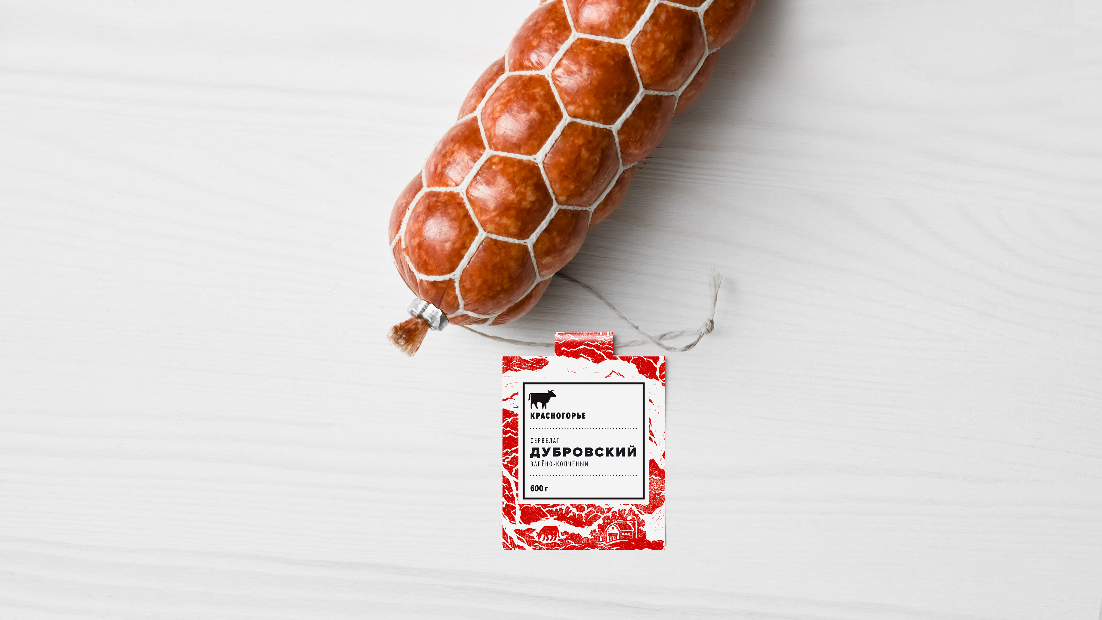 Понимание специфики производственного процесса, особенностей рецептуры и отношения производителей к своему делу помогло нам сформулировать простую и честную концепцию позиционирования бренда. «Красногорье» — это колбаса из настоящего уральского мяса. С этой формулировкой мы приступили к поиску идеи для оформления упаковочной линейки.
