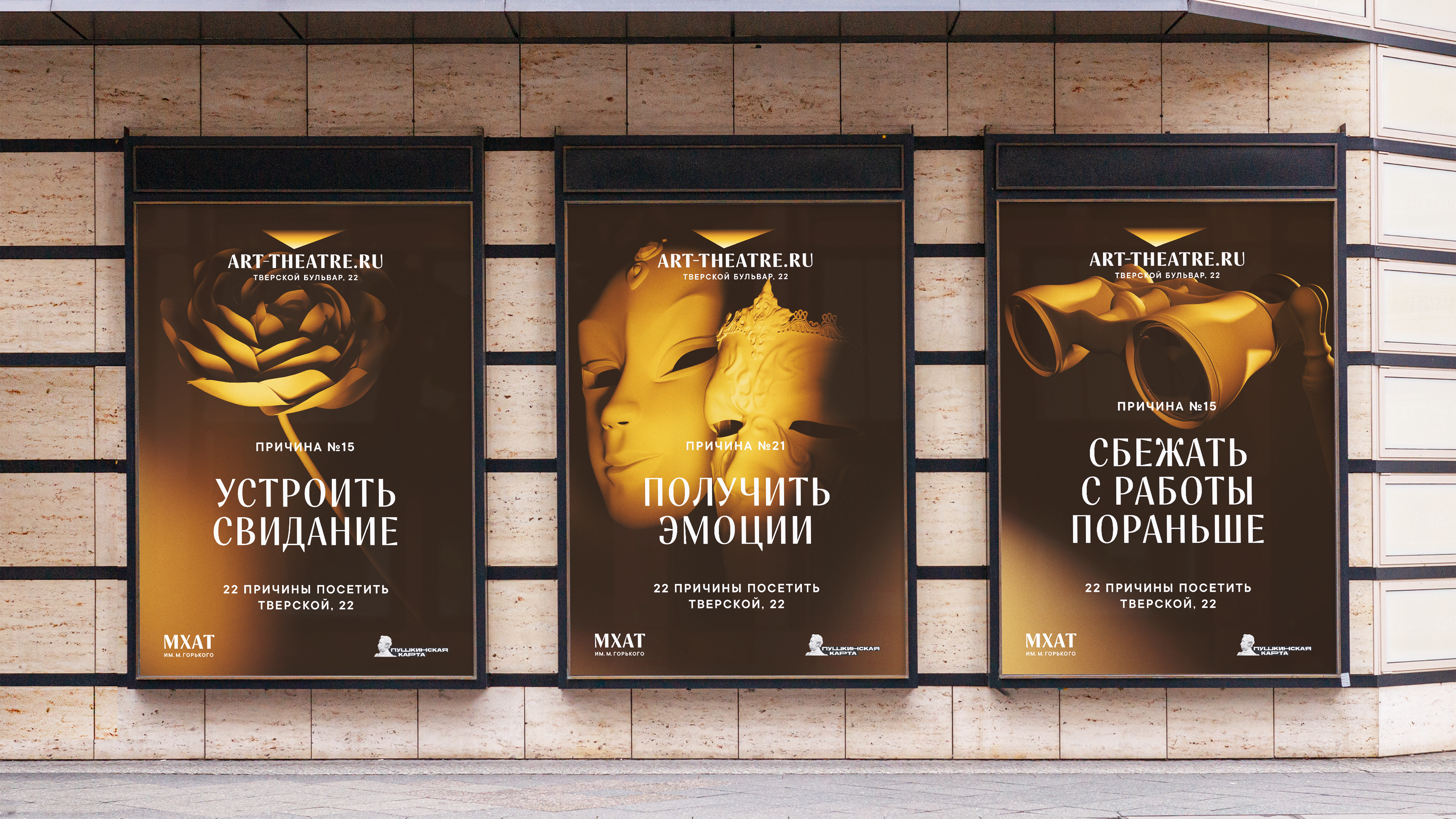 Из этих ограничений родилась идея «22 причины посетить театр на Тверском, 22». Через эту рифму мы показали многообразие поводов сходить на спектакль и помогли новым зрителям запомнить адрес. А кому-то подали идею.