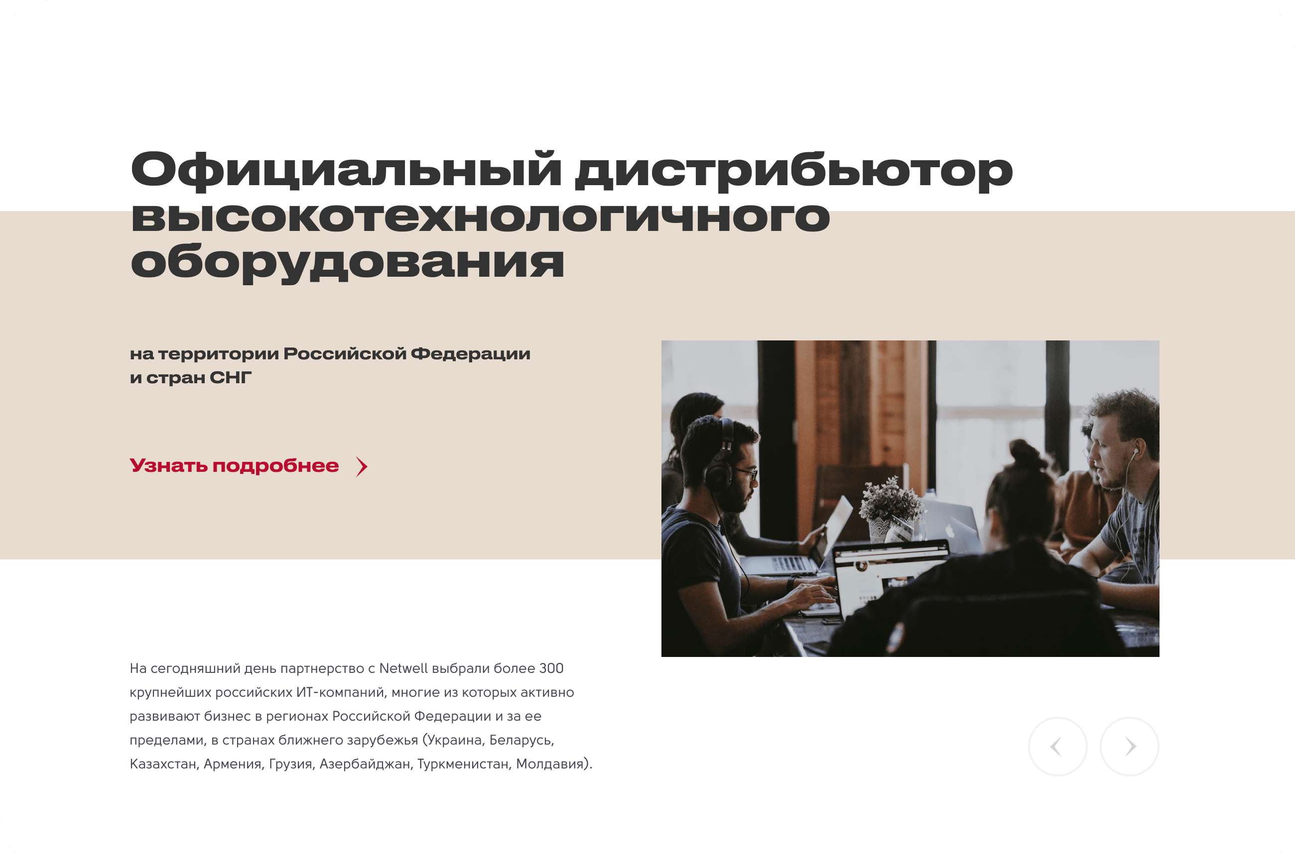 Netwell — официальный дистрибьютор высокотехнологичного оборудования на территории РФ и стран СНГ, входит в топ-3 игроков рынка России. На фоне конкурентов, компания Netwell выделяется надежностью как поставщик и индивидуальным подходом к потребностям каждого из клиентов.