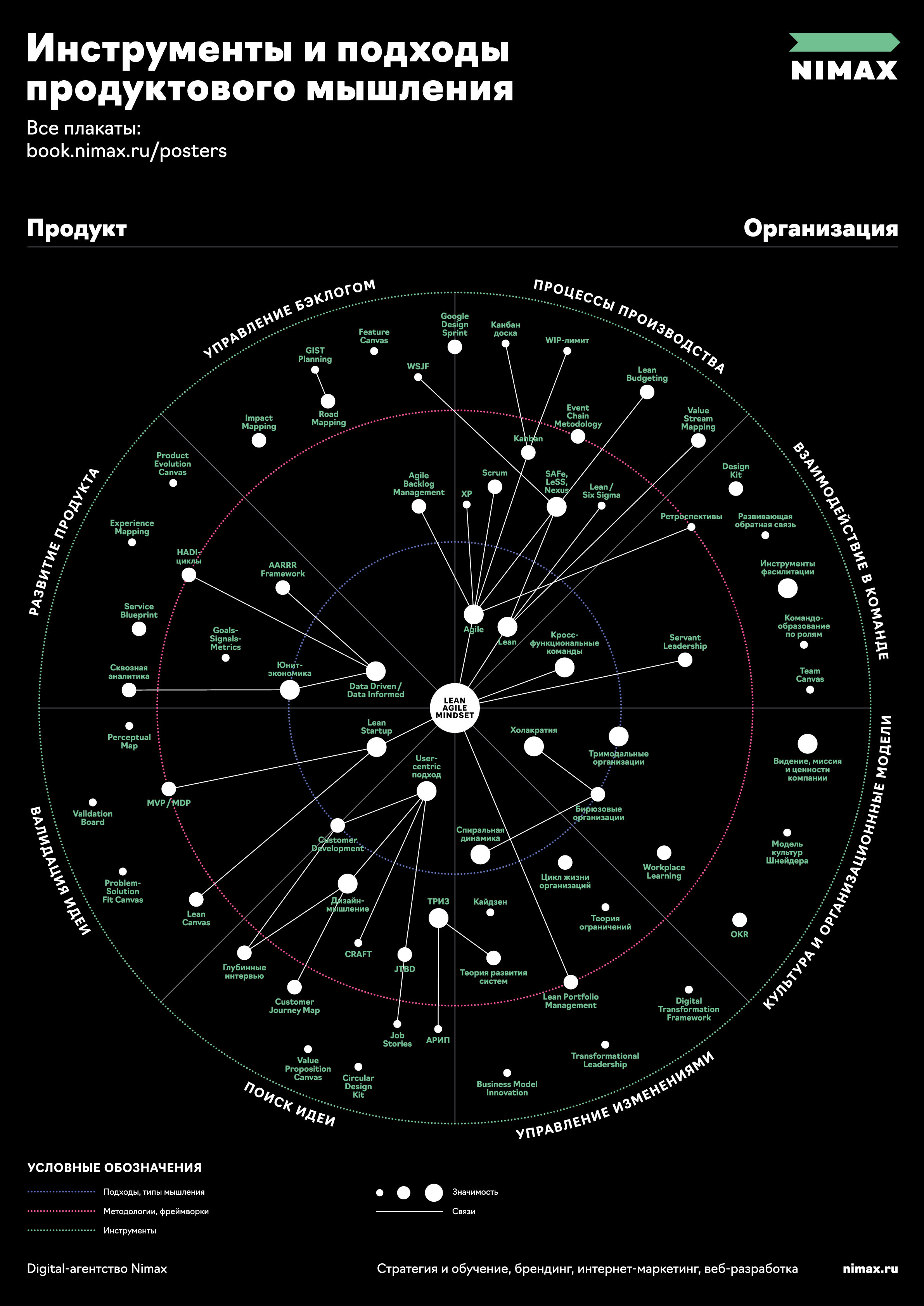 Начните погружение с маленького круга в центре — эти подходы лежат в основе. А затем изучайте методологии и инструменты внутри тех сегментов, которые сейчас актуальнее всего для вашей команды.