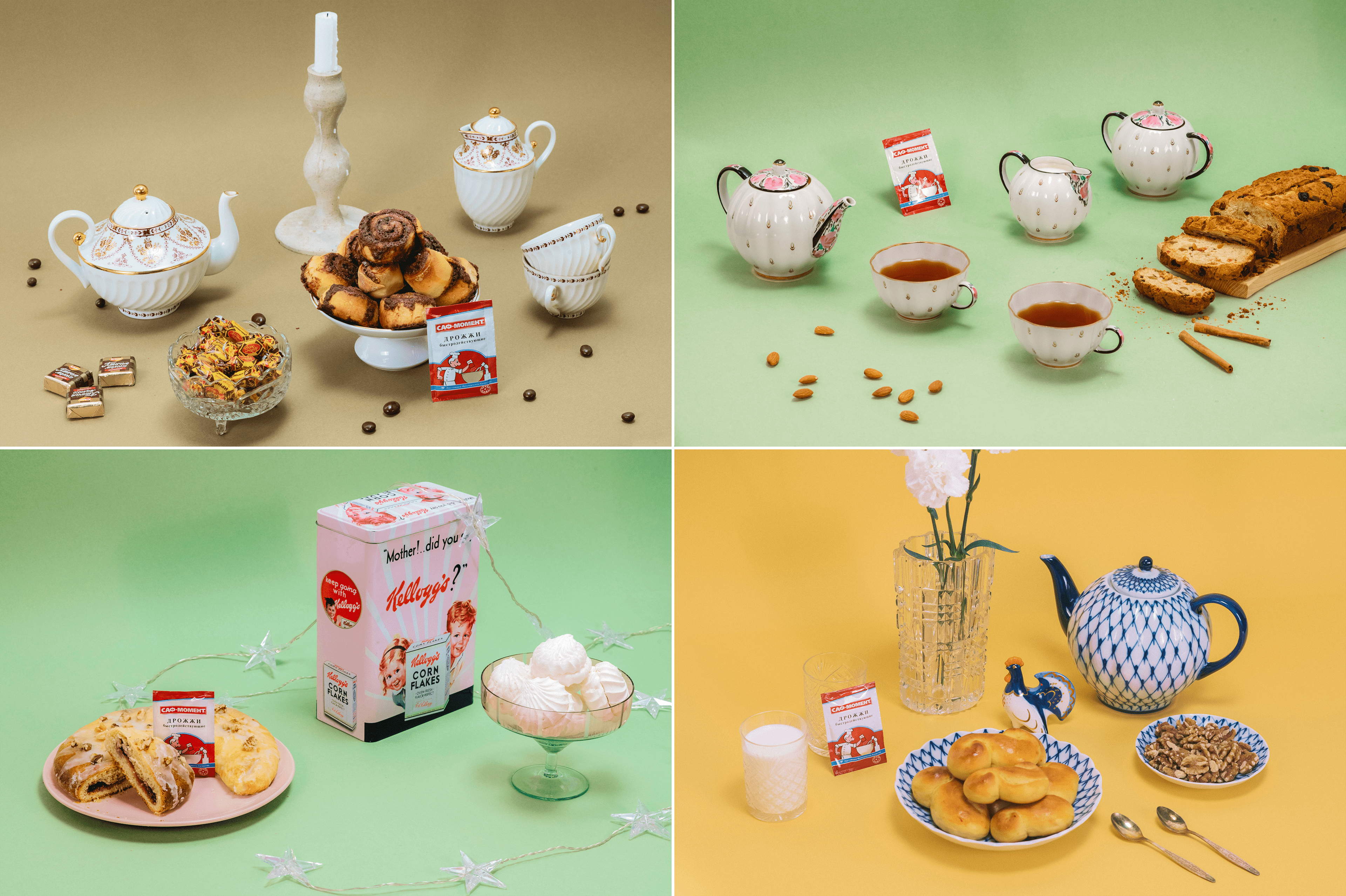 Этот спецпроект был нужен для раскачки аккаунта — ведение мы начинали с нуля. Запустили две параллельные истории — челленж по готовке новогодней выпечки и адвент-розыгрыш в сториз. Для фотографий блюд челленджа совместили стилистику американских 50-х и советского Нового года.