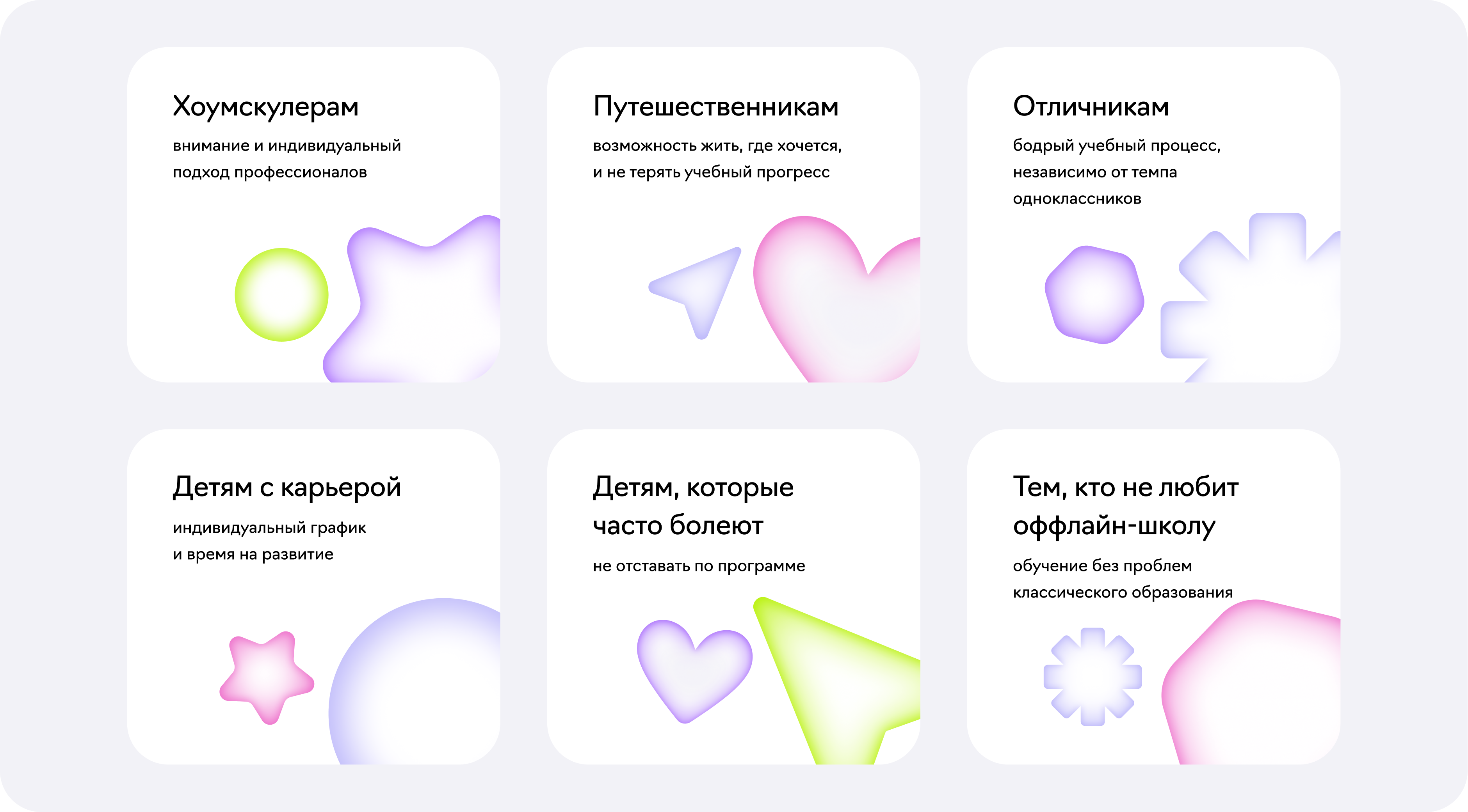 Необходимо было показать родителям, что онлайн-образование — это нормально, через реальные кейсы и жизненные ситуации. А детям донести, что онлайн-школа — это современно и даёт возможность посвятить себя карьере, творчеству или спорту.