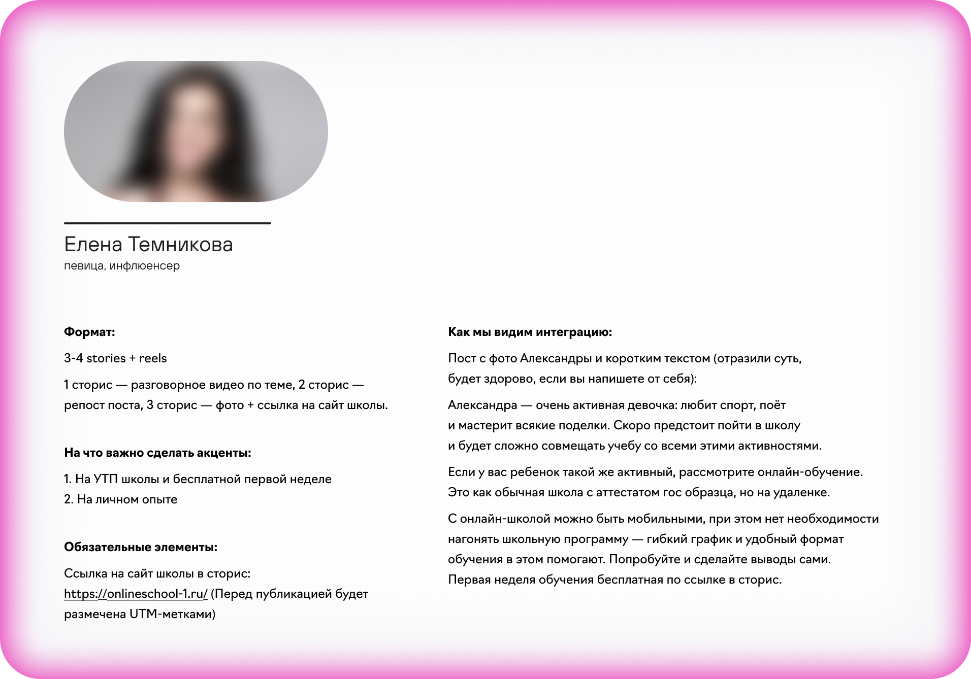 Пример ТЗ для рекламы у блогера: