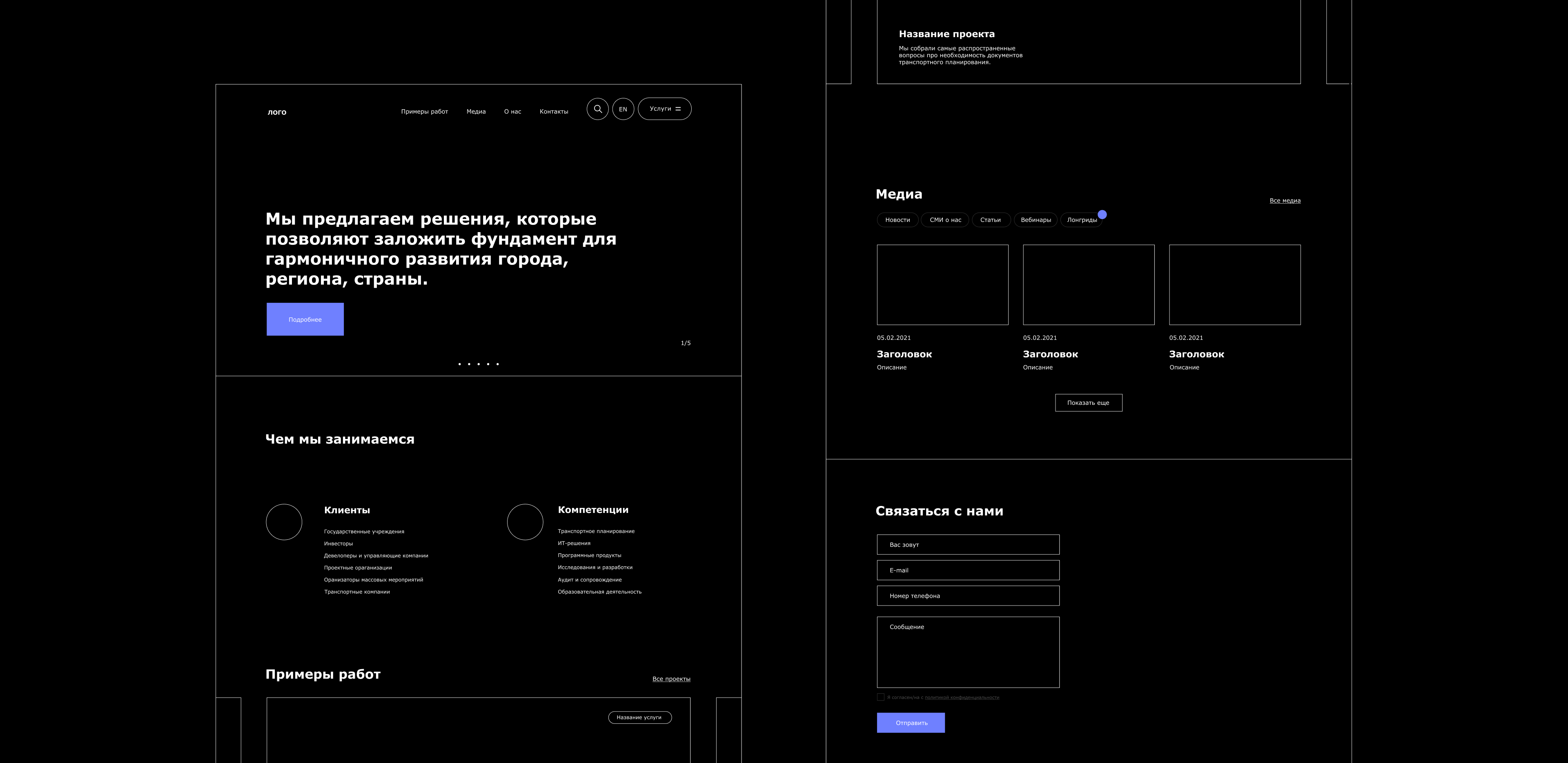 Провели серию интервью, аудит текущего сайта и изучили конкурентов, чтобы глубже погрузиться в бизнес клиента. На основе данных из исследований и SEO-рекомендаций спроектировали страницы будущего сайта.
