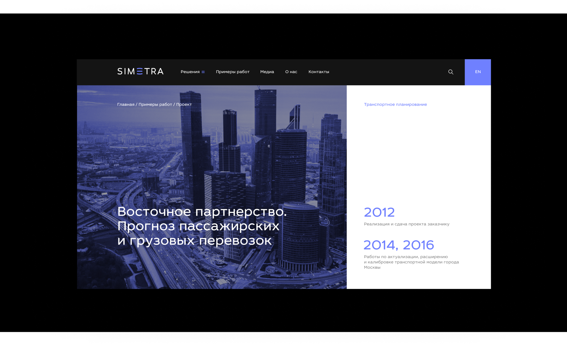 За основной визуальный идентификатор взяли фотографии городов, улиц и транспортных развязок в фирменной обработке SIMETRA.