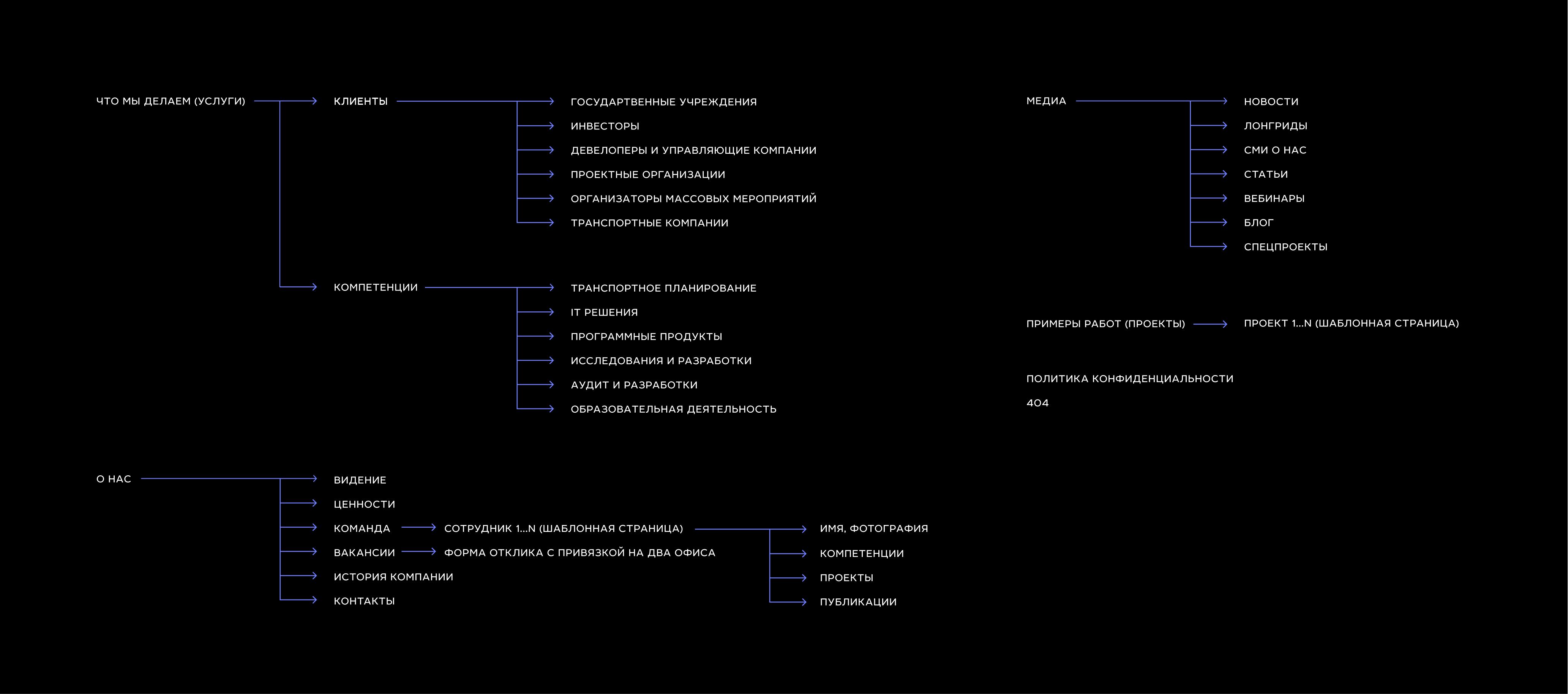 Наша задача: продумать и облегчить структуру сайта, упростить навигацию и обновить дизайн согласно новой айдентики. При этом сохранить текущий трафик и ссылочную массу, раскрыть все услуги клиента и перенести контент с действующих детальных страниц проектов на новый сайт.
