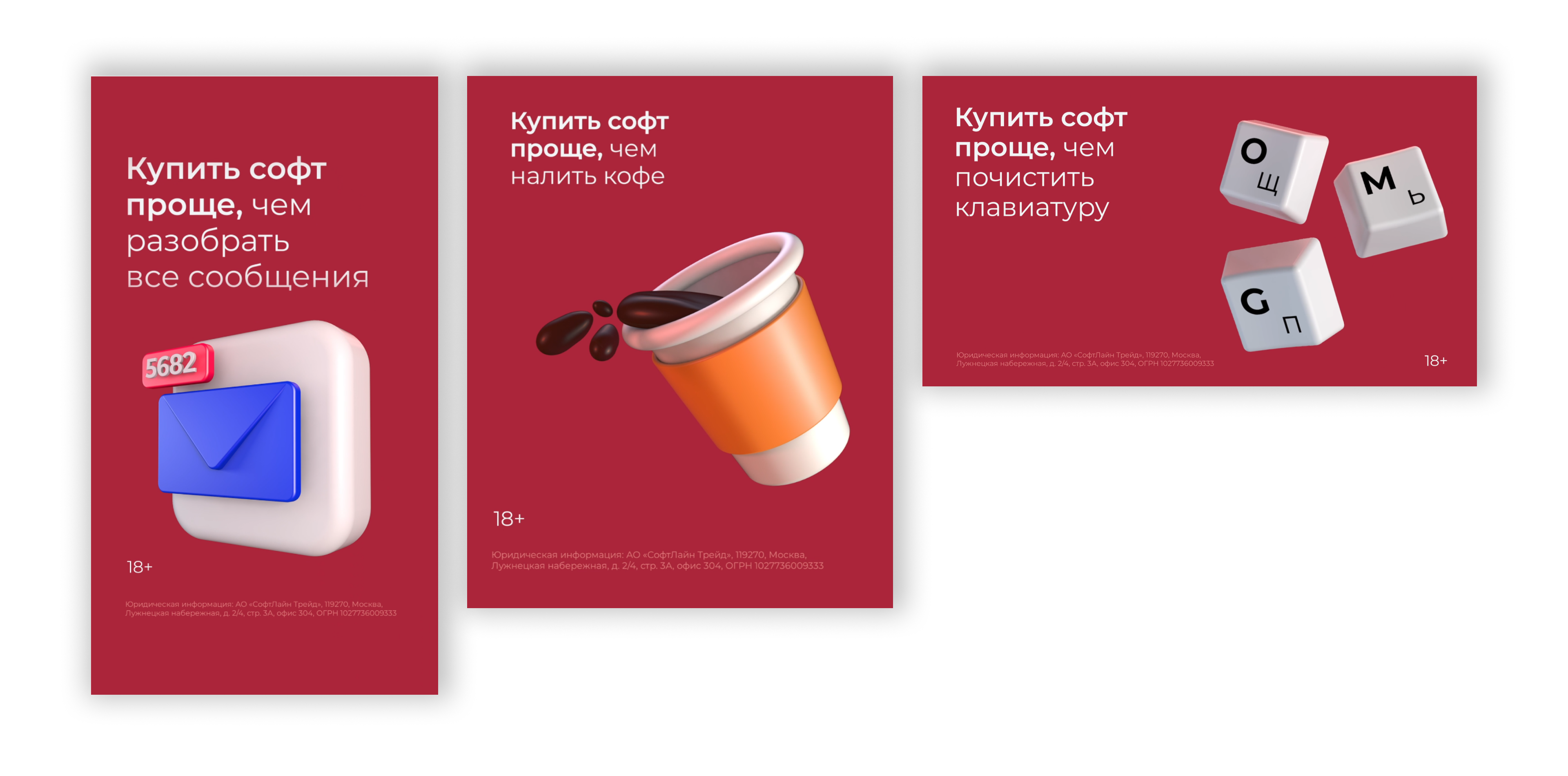 Мы показываем, что простые повседневные действия оказываются сложнее, чем покупка программного обеспечения в Softline Store. Такой посыл помог нам выделиться среди сообщений конкурентов про широкий ассортимент, лидерство на рынке и скидки.