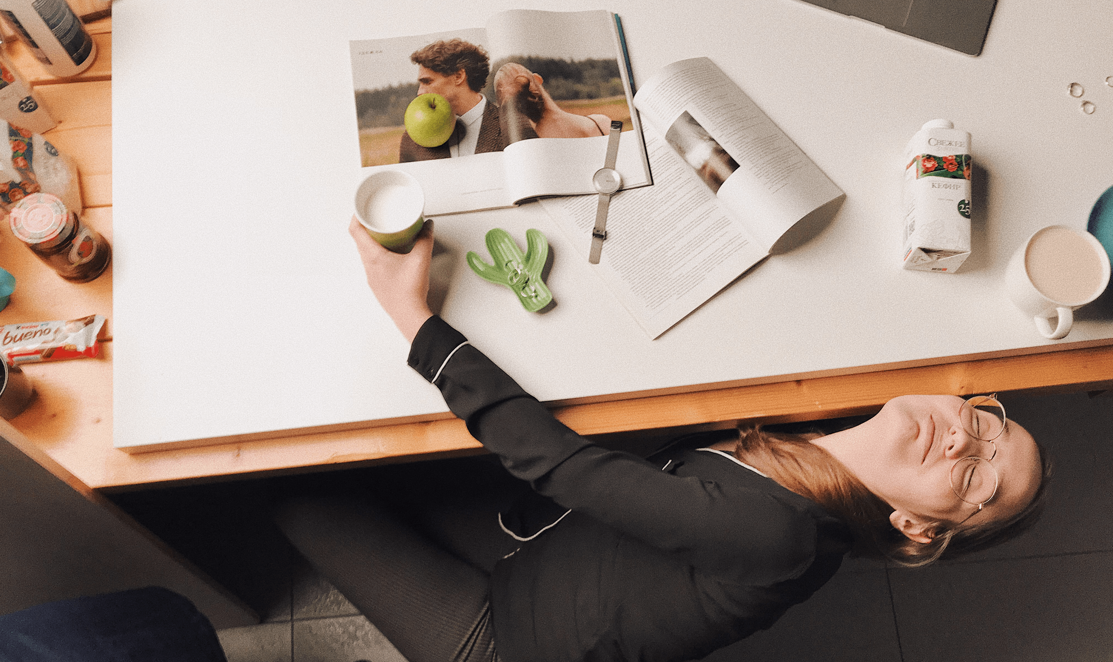СММ для Свежего Завтра — проект про команду. У нас очень плотное взаимодействие с клиентом: детально обсуждаем контент, спорим и договариваемся. Бренд-менеджер практически всегда находится на съемках. Не ради контроля, а помогает — приносит кучу реквизита и даёт в кадр свои части тела. Внутри команды мы тоже научились сотрудничать иначе. Все модели работают в Нимаксе — на фото девочки выглядят естественно, а ещё им интересно попробовать себя в другом деле.
