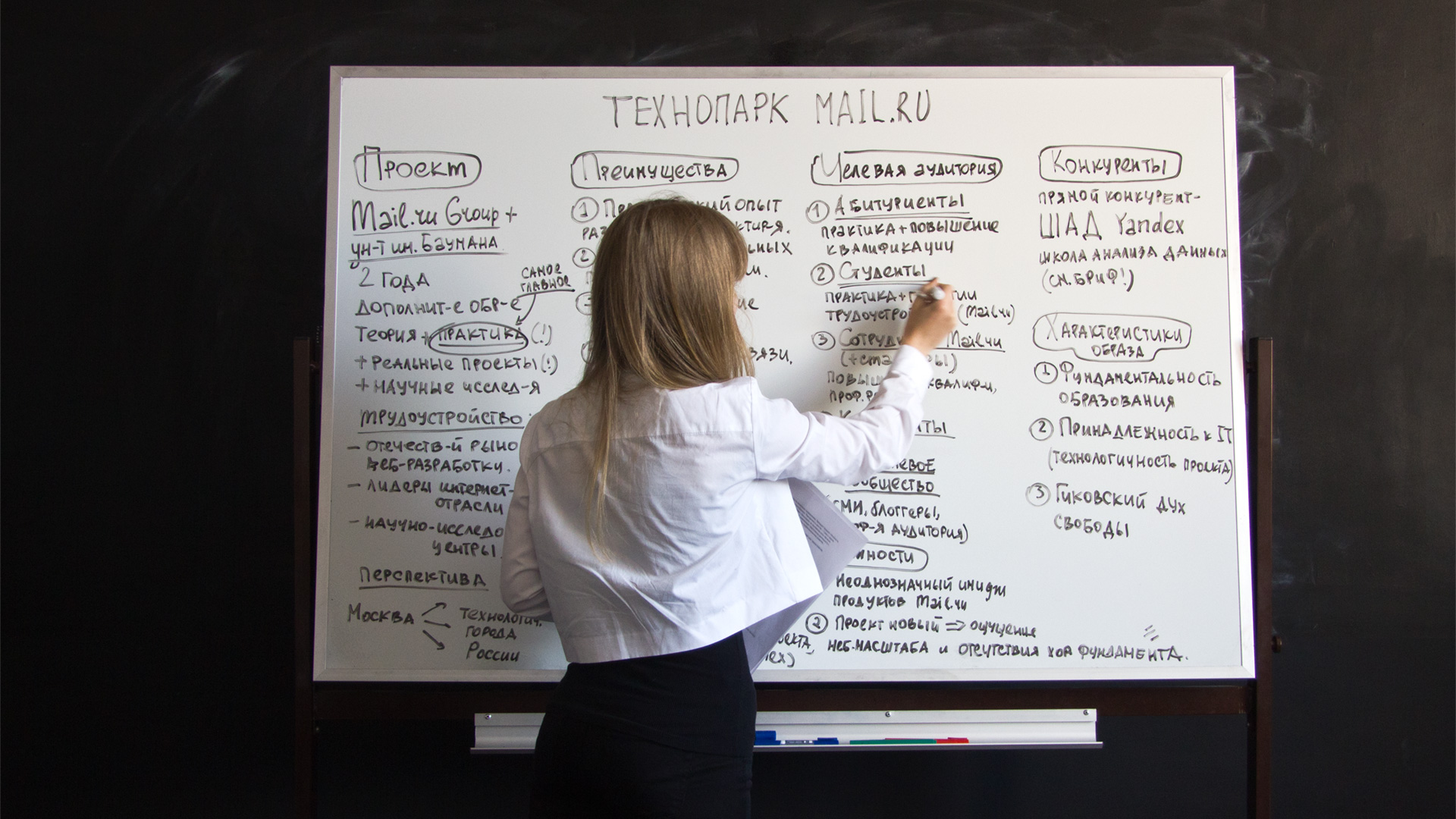 «Технопарк» ориентирован на очень широкую аудиторию, в частности на абитуриентов и студентов университета, сотрудников и стажеров Mail.ru Group, конкурентов, а также на разнородное отраслевое сообщество. Среди многочисленных заинтересованных лиц мы выделили две ключевые целевые группы: студенты университета и профессиональная аудитория. И те и другие выбрали одинаковую профессию и схожий путь, а значит, при всех имеющихся различиях у них должно быть много общего, к тому же интересы новичков и маститых профессионалов в данном случае совпадают.