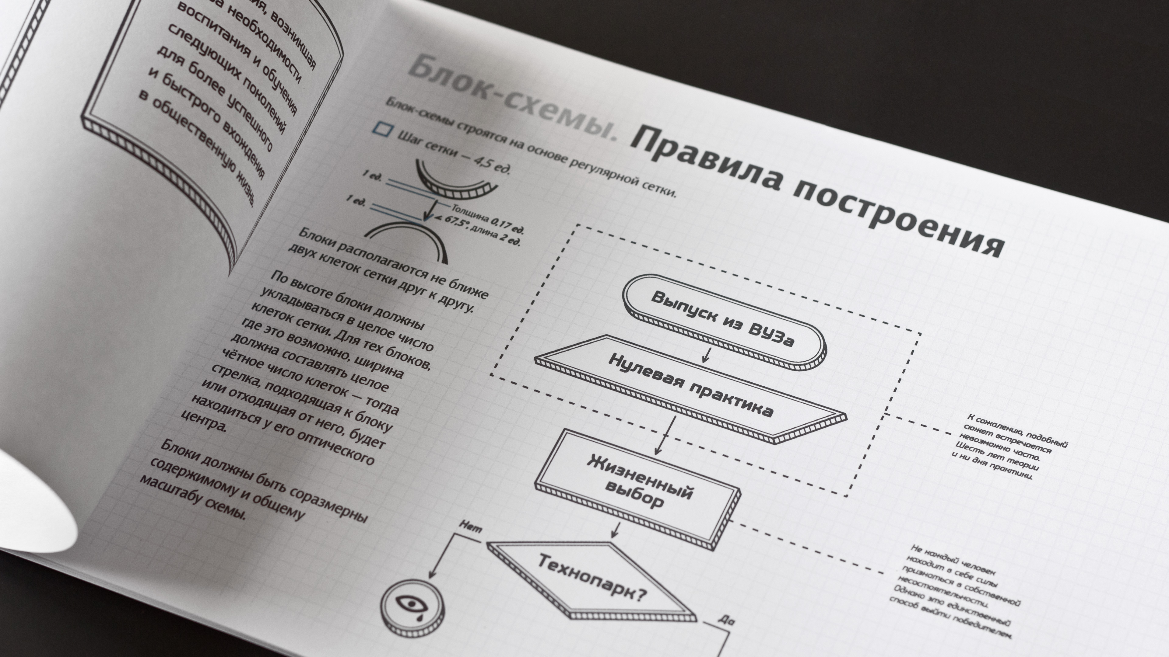 При наборе текстов используется шрифтовая гарнитура PF Isotext Pro, стилизованная под чертежные шрифты. Такой выбор не случаен, поскольку подобные шрифтыпредназначены для создания конструкторской документации, в том числе логических блок-схем.