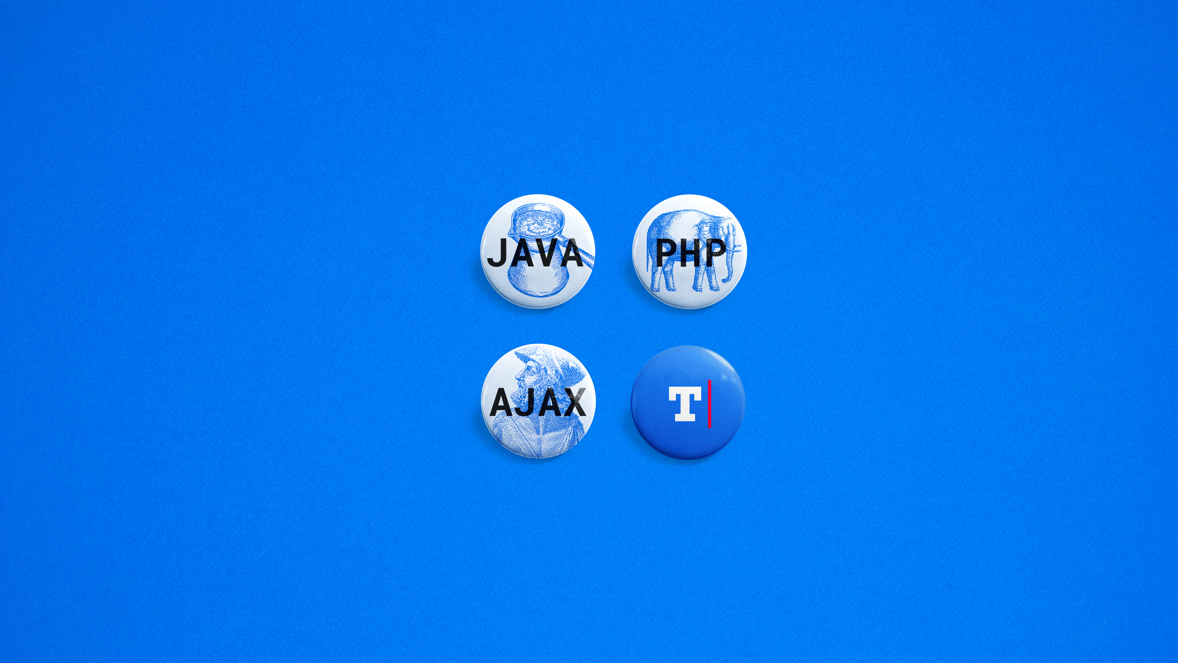 На сувенирных значках — неофициальные символы языков программирования Java, PHP и Ajax. В последнем повторили ошибку амстердамского футбольного клуба «Аякс». Они изобразили на своей эмблеме вовсе не Аякса, а Менелая. Так могли бы шутить на вечеринке для искусствоведов и разработчиков.