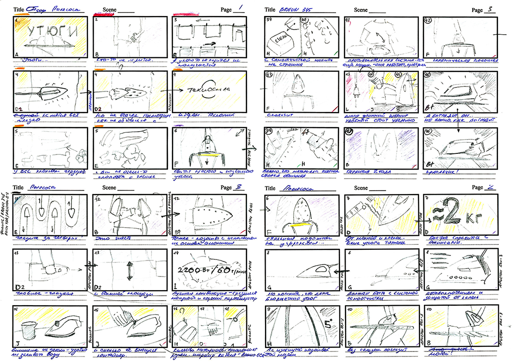 Кадры — не импровизация. Все придумываем, организуем и зарисовываем заранее. Порядок съёмки оптимизируем.