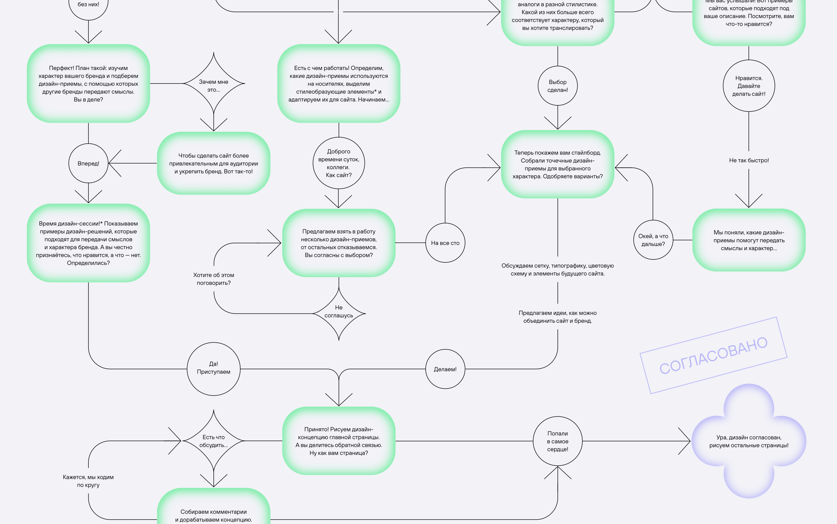 Если выйдете на ветку, которая заставляет ходить по кругу — вы нащупали важный момент. Обратите на него внимание, чтобы дойти до заветного «Ура, дизайн согласован!».