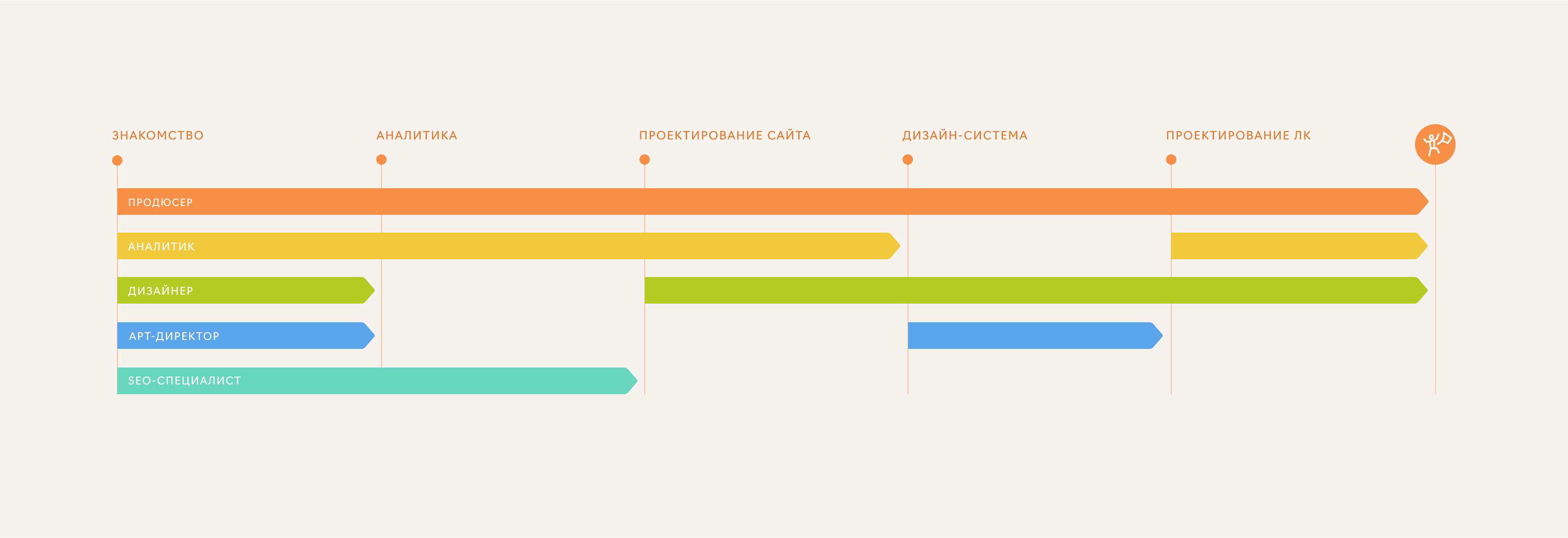 Под проект собрали дизайн-команду: аналитик, Дизайнер интерфейсов (UX/UI), арт-директор и продюсер. При необходимости подключались SEO-специалист и арт-директор отдела брендинга.