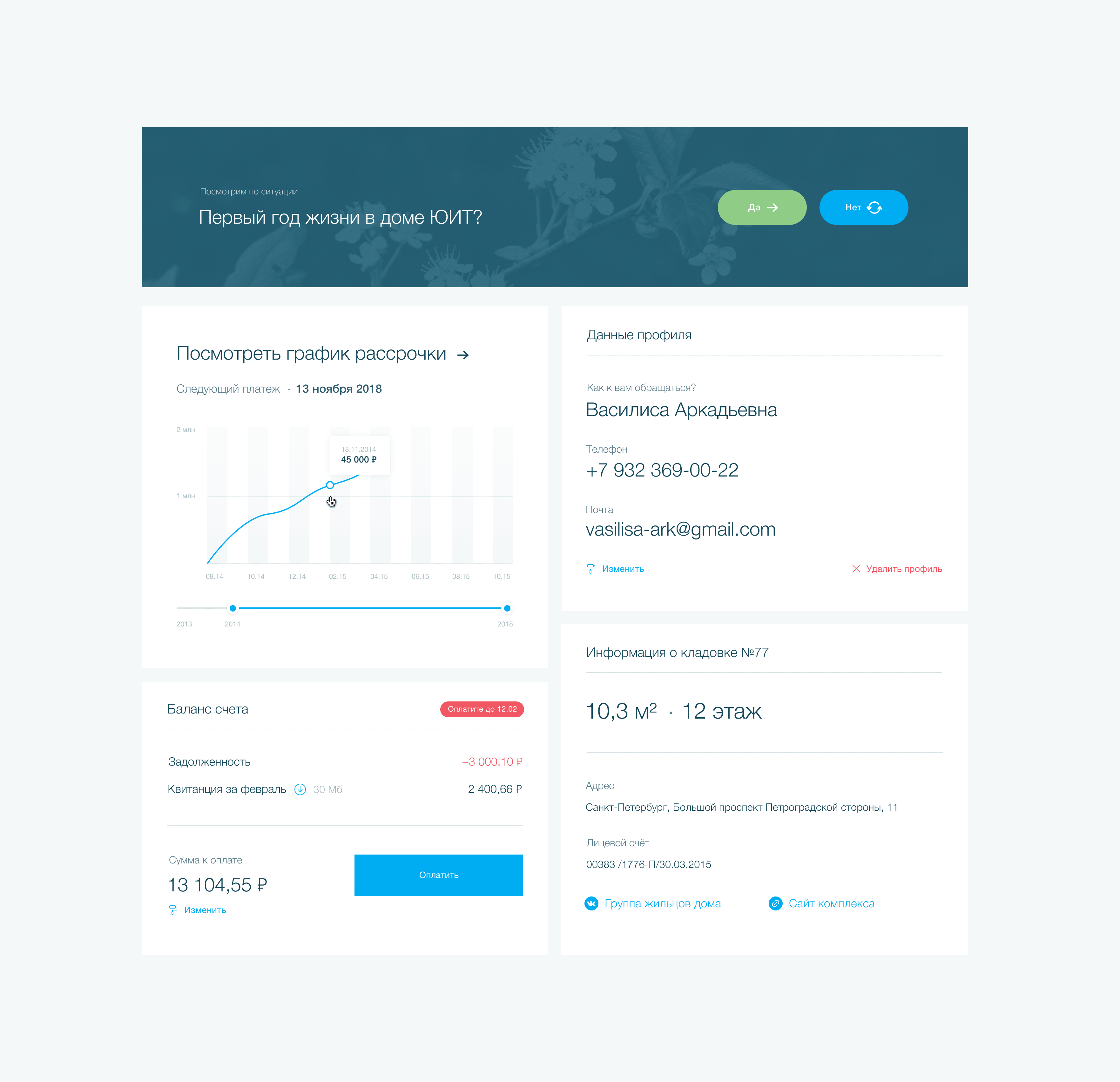 Российское подразделение концерна ЮИТ: строительные и управляющие компании, которые работают в шести регионах России. Наша задача — разработать удобный веб-сервис для клиентов ЮИТ.
